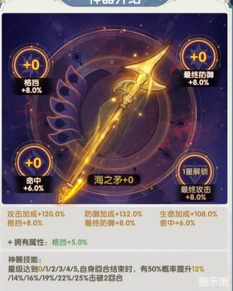 海之矛的优势不在于瞬间爆发,而是稳定破防加上全面加成,如果你想让队伍前排更稳,又不希望缺少输出,海之矛就是最合适的神器选择