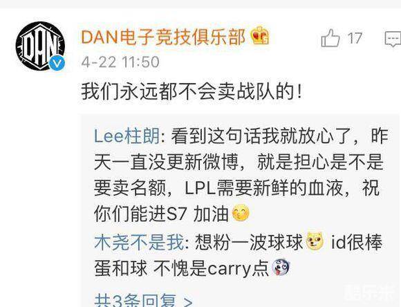 由于不常发布微博,以及幕后的老板太过神秘,导致人们纷纷在怀疑Dan是否要卖掉自己的LPL资格。