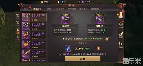 强化装备,进化装备,穿套装装备等都是增加战力的好办法。其中进化装备提升战力最快,最多的,也是最重要的!玩家们请不要赌心态,到达百分之百再进化!否则进化失败是很亏的。
