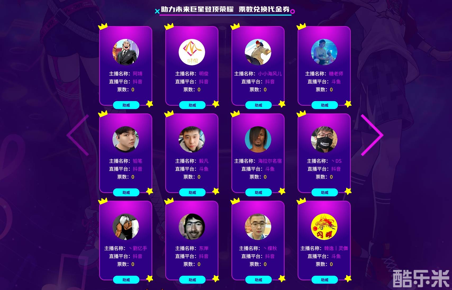 本次 “梦想之星” 主播榜单汇聚了来自抖音、斗鱼、B 站三大主流直播平台的众多潜力主播,阵容多元且颇具看点。抖音平台作为主播主力军,有张三、天梦哥哥、明俊、老非(街球老非)、小艾、晚秋、海老师、丶劉亿手、小小海风儿、阿湿、丶楪秋、破别、达己、这是杨小鱼 o、破军 Sg、胖哥哥、隔壁老王、阿靖、铅笔、东岸等多位主播参与,涵盖了不同风格与领域,有望在活动中展现多样直播风采;斗鱼平台也不甘示弱,糖老师、毅凡、罗卡还是一姐、海拉尔名宿、白猫哥酷爱打球、北城小凡凡、帝曲、韓逸丨灵儛等主播实力加盟,他们将凭借各自的特色内容角逐榜单席位;B 站方面,猫儿的忧伤、璓丶、悠悠、帅气的王帅傅、阿赢等主播同样整装待发,试图在这场竞争中脱颖而出,为平台争光。目前,所有主播票数暂未开启增长,处于同一起跑线,后续竞争态势备受期待。