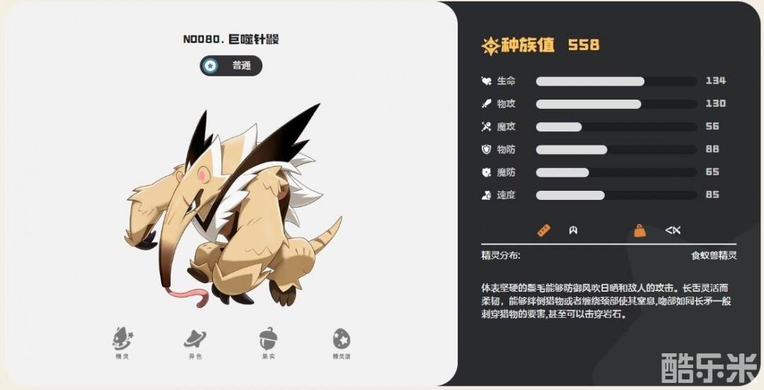 洛克王国巨噬针鼹它其实实力还是比较强悍的,由于它的外形相对奇怪,所以很多玩家对它是比较感兴趣的,但是玩家如果获得它之后,想要让它发挥出巨大的价值,那么需要注意它的操作难度非常的高,建议中高阶段的玩家进行合理的培养,这样的话才能够创造出更高的价值。而在战斗的过程当中,它将会凭借高额的重击伤害,再加上独特的技能机制,并且在战斗的过程当中,它能够实现消耗能度比较低,但是可以持续输出作为特点来持续性的战斗。下面和酷乐米小编一起来看看吧