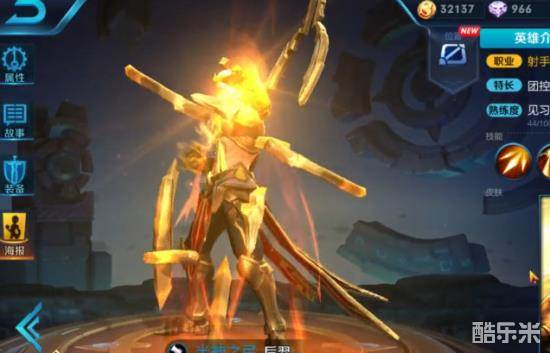 另一位就是后羿了,他的出场动画主要是从天而降然后从地上取出自己的神弓!看来这把弓也是高科技做得,四分五裂的都还能自动结合到一块!