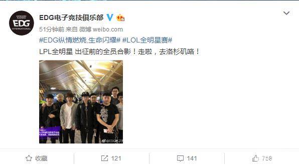 而EDG则晒出了LPL全明星的完整阵容合照哦