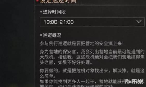 由于任务地点与营地的位置相隔比较远,建议大家灵活使用传送道具来提升效率。当我们完成巡逻任务后,就可前往到保安官的所在位置来领取奖励,会获得对应的营地贡献值与繁荣度。要是营地里面每天完成巡逻任务的人数超过四个人,那么次日管理值就会增加一点。这就对营地的活跃度定下了基础,要是玩家所在的营地一直完成不了要求,建议更换一个活跃玩家更多的。每日任务的流程时长最多为两个小时,规定时间可以用管理人员来设定,并在第二天才会彻底生效。