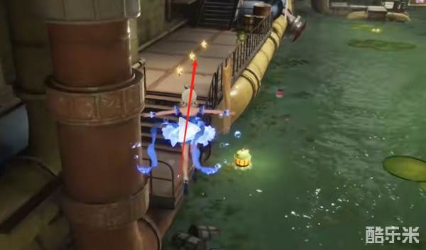 5、拿到后返回,先不走荷叶,跳到左侧管道上面