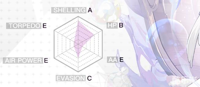从属性配置来看,其六维数据表现为炮击A、耐久B、机动C,其余三项均为E级。作为超稀有的主力风帆舰,属于典型的后排输出单位,俗称“金大炮”。但与传统战列舰或战巡不同,风帆舰普遍具备较低的生存能力,缺乏防空武器与防空数值,在面对空袭时极为脆弱,因此需要良好的阵容保护。其输出核心依赖技能机制与主炮强化效果来实现爆发。