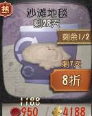 前往地图完成捡贝壳任务就可以免费获得沙滩地毯,这款地毯和之前美术馆不同是可以在商城购买多份
