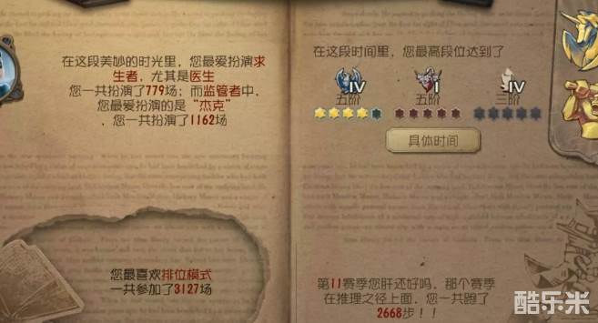 第五人格演绎者这个称号是每个赛季结束之后才会发放的,在这个赛季中你游玩的哪个角色场次最多并且获取的最佳演绎次数最多就能获得演绎者这个称号。下面和酷乐米小编一起来看看吧