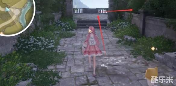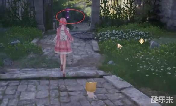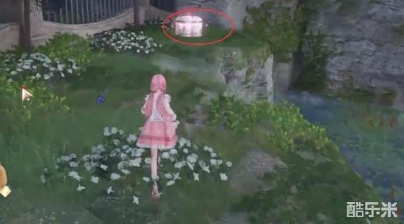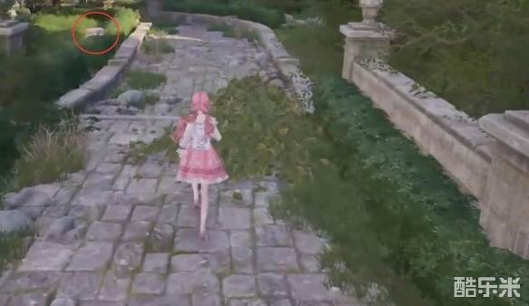 5、往圆台右边走,在靠左的草丛里【宝箱*1】,接着往下走;