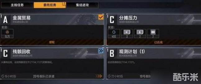 无尽的拉格朗日度过了萌新时期后,我们基地的等级也变高了,就会接触到各种各样的星系势力,这是我们可以派出一艘FG300侦察舰来跟他们联络接任务,分为四类:运输物资到指定地点、清除固定地点的海盗、用资源换资源、以及指定某个地点让舰队待命一定时间。下面和酷乐米小编一起来看看吧