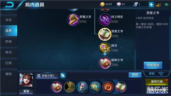 噬神之书提供了较强的吸血能力,配合貂蝉的被动效果更加好,续航能力与对线优势更是得到了加强。影忍之足提供的移动速度能够让貂蝉更好的进行支援,被动也可以减少敌方射手对貂蝉的输出,加强生存能力。痛苦面具提供的法术穿透能够让貂蝉在更短的时间内打出更多伤害,对坦克也可以造成更多伤害。极寒风暴提供了大量冷却缩减,能够让貂蝉更加频繁释放技能加强伤害,被动也能够加强貂蝉在团战当中的生存能力。不死鸟之眼加强的法术防御能够让貂蝉更好的抵抗敌方法师的伤害,被动增强的回复能力也可以提升貂蝉被动的效果。贤者之书提供的大量法术强度可以让貂蝉输出更加强劲,生命值也加强了她的生存能力。
