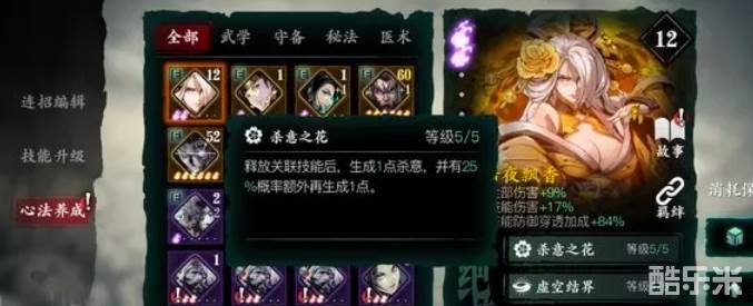 心法搭配上优先选择魔堡和胖花,这两张卡能显著提升杀意恢复和奥义充能速度,让咱们的技能衔接更流畅。如果暂时抽不到魔堡,可以用芳华邪后或暗夜飘香过渡,但记得把资源留给后期核心心法。绝影的刻印推荐选择增加空中伤害和闪避率的属性,比如影舞或疾风,这样能在空中连招时打出更高爆发。