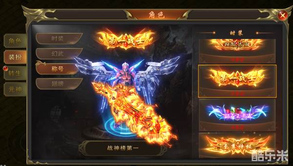 装扮系统显示所有装扮预览,装扮包括武器,衣服,称号,翅膀,穿戴不同的装扮,属性增益不同,各个部位的时装可以自由搭配。