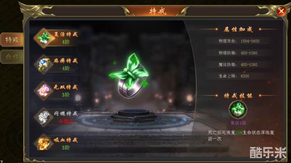特戒分为6种,复活特戒,麻痹特戒,无双特戒,闪避特戒,吸血特戒,至尊特戒
