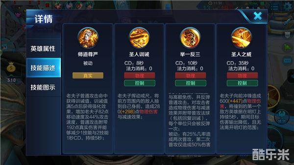解析:二技能有着强大的免伤效果,并且普攻过程中有一定几率触发二次普攻,配合被动技能可以打出大量的真实伤害,是老夫子输出及吸收伤害的关键技能。