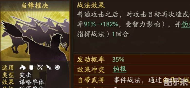 当锋摧决是另一个关键战法,能禁用被动和指挥战法,直接废掉藤甲兵的减伤效果。建议给速度快、能先手的武将携带,比如凌统带裸衣血战+当锋摧决,两回合就能撕开藤甲防御。智力压制也是稳妥打法,藤甲兵法术抗性普遍偏低,用高智力队伍平推效果显著。兵种方面,藤甲盾被骑兵克制,组一队西凉铁骑或虎豹骑,20%的兵种加成能让输出更暴力。
