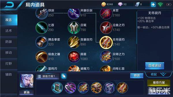 六神装推荐:抵抗之靴+暗影战斧+宗师之力+不祥征兆+魔女斗篷+无尽战刃