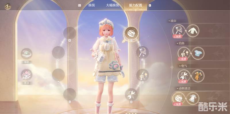 这是玩家第一套需要自己制作的功能套装。给小动物清理毛发,可以获得对方身上获得对应的材料,用以制作各种衣服部件。而且这个套装好在可以然玩家跳过清洗小动物的动画,否则玩家想刷熟练度的时候肯定头大。我们在切换套装之后,只要走进小动物,在显示交互按钮后,就可以完成清洗;