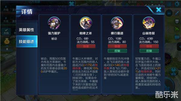 总结:牛魔的被动技能非常给力,可以为牛魔和附近的队友增加护甲以及魔抗,能够在最大程度上帮助队友减少敌人带来的伤害。