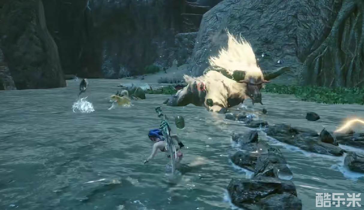 在武器的选择方面,玩家可以使用太刀,配合太刀的纳刀术以及居合斩,可于连续性的储备红刃效果,在红刃状态之下,玩家可以使用水月攻击,进行反击格挡,同时纳刀具和可以反击所有的怪物突袭技能。