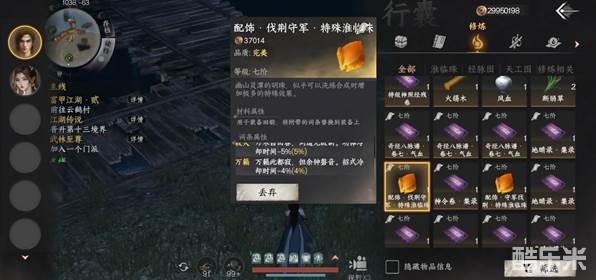 1、在交任务最后阶段回一气屿之前存档,交任务会给饰品临淮珠,这里可以SL出极品临淮珠,多刷了几次,刷到三寂灭,减少15%技能时间。
