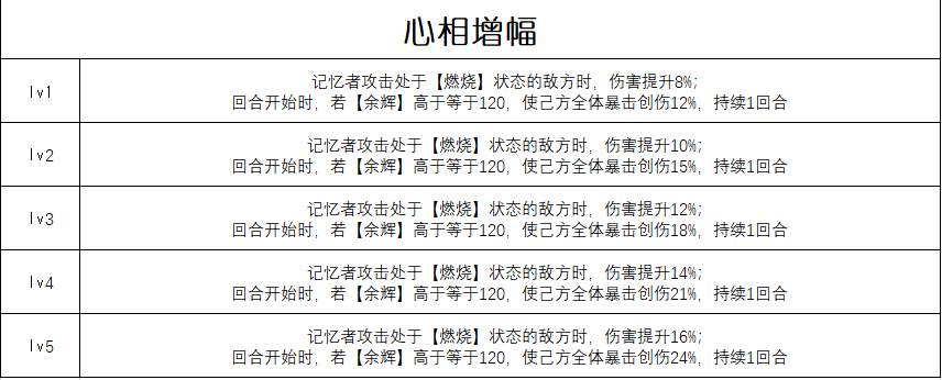 重返未来1999无意识梦魇属性怎么样,最高等级属性:记忆者攻击处于【燃烧】状态的敌方时,伤害提升16%,回合开始时,若【余辉】高于等于120,使己方全体暴击创伤24%,持续1回合。下面和酷乐米小编一起来看看吧