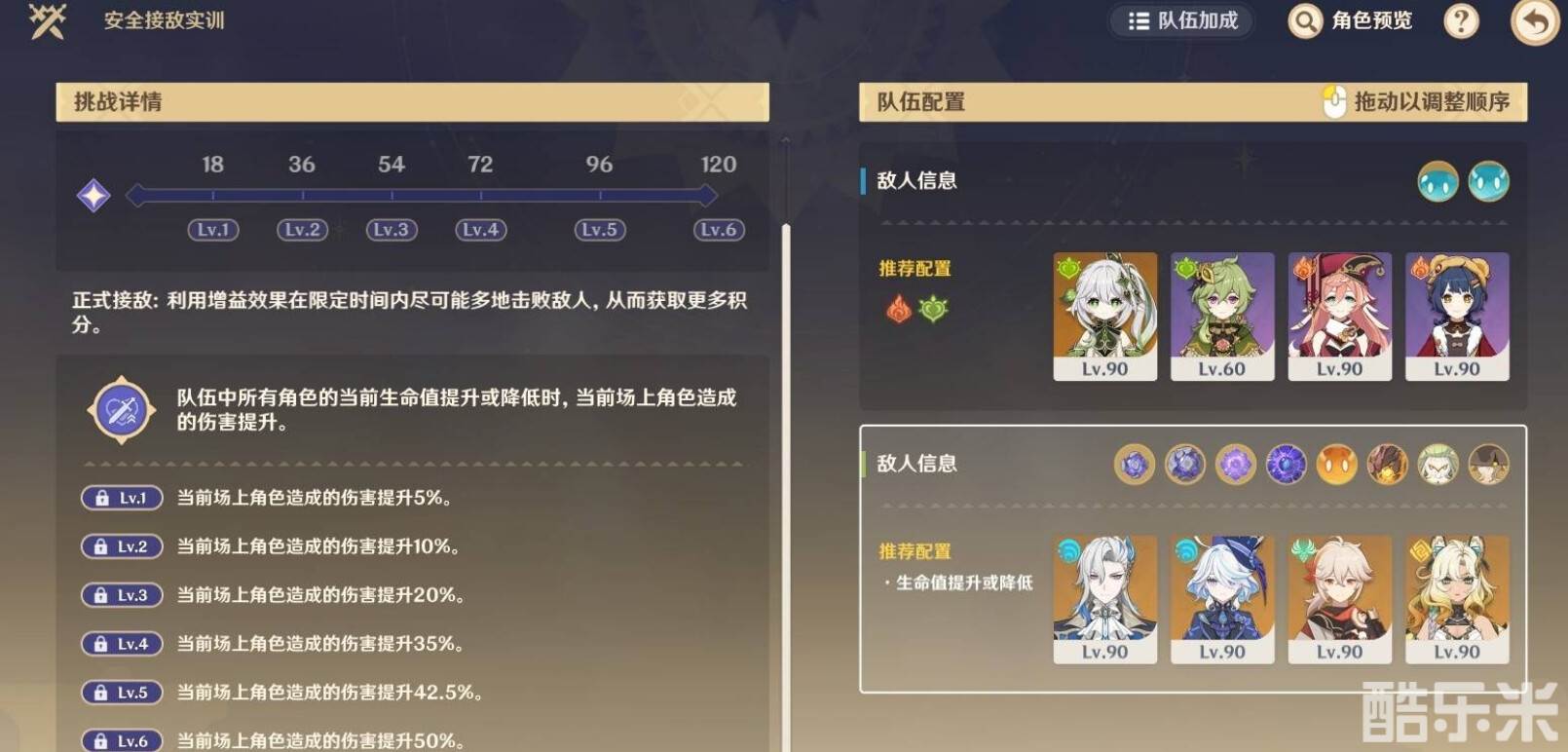 原神月之二版本“参究故墟·稳健知行”活动的“安全接敌实训”玩法需要旅行者根据各关卡增益和目标来选择适合的阵容完成战斗挑战,下面和酷乐米小编一起来看看吧