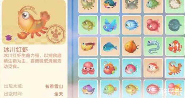 摩尔庄园手游冰川红虾主要用于解锁图鉴或制作仙桃鲜虾卷、奇异炸冰虾等料理。获取该资源需满足特定条件:必须在拉雅雪山鱼池使用中级及以上品质的鱼饵垂钓,且最佳时段为清晨或傍晚。其稀有度为2星,虽全天刷新,但成功率受鱼饵等级与时间影响较大。下面和酷乐米小编一起来看看吧