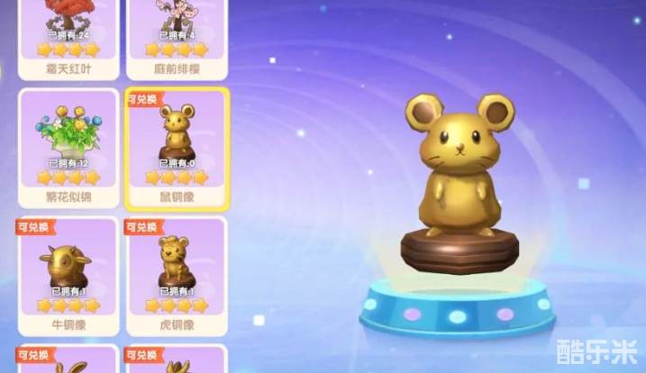 斑点鲨可换取“斑点鲨留声机”,可在晚上下雨的浆果丛林钓到。魔鳉鱼能换到的家具是“魔鳉鱼奇幻缸”,其常出没于夜晚下着雨的牧场鱼池之中。鱼类的第二种用途是兑换十二生肖铜像,比如鼠、龙、蛇、马还有狗等等。像龙铜像得用到五十份绿鲤鱼、七份发光的草,还有十五份罕见矿石、八份坚硬木头等。鼠铜像得用到二十份冰激凌鼠、八份发光草,还有十四份罕见矿石以及八份坚硬木头。蛇铜像除了需要罕见矿石、木头和发光草,必须加入八十份樱花蛇。