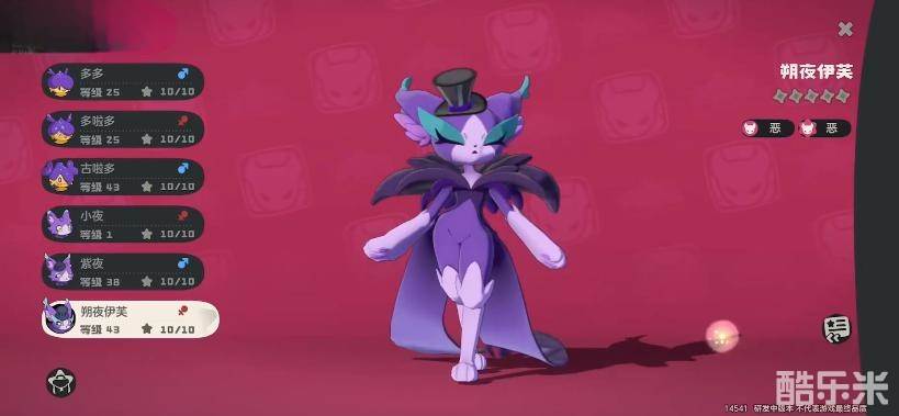 最终形态为朔夜伊芙,需角色达到44级方可完成进化,总种族值高达537,速度属性达到115,在多数对战场景中均可优先出手。其战斗风格优雅从容,跳跃如舞蹈般轻盈,头顶旋转的礼帽还能扰乱敌人判断。性格孤僻,不喜群居,仅允许亲近的洛克伙伴触碰皮毛,情绪愉悦时,耳尖的蓝色绒毛会散发微光。