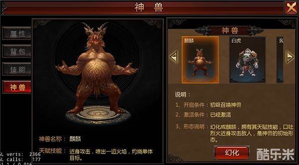 初级召唤神兽:传奇经典的麒麟形态。
