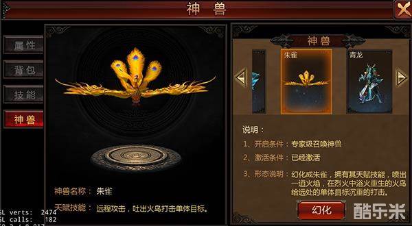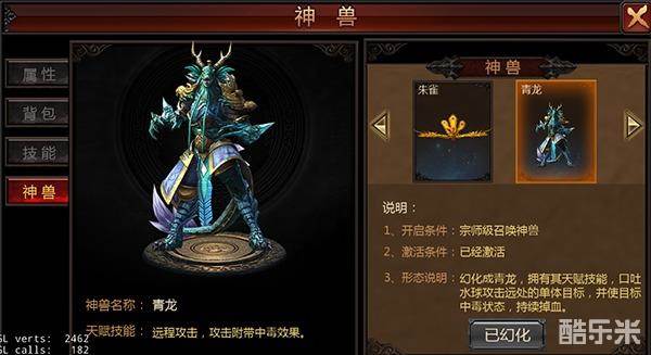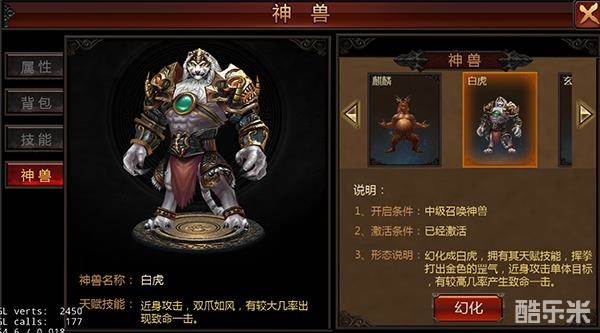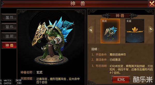 道士的召唤神兽技能等级越高,可以开启的神兽形象越多。