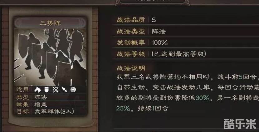 三国志战略版三势的核心点一半是副将的增伤,而张角作为主输出站非增伤位,基本上完全浪费了三势阵这一段的增伤效果。至于副将减伤锋矢也有,暂且不展开讨论。这里直接分析矛盾的主要方面,主将位的五回合概率发动提升带来的伤害增加和锋矢阵全程增伤,哪个更合适?简单粗暴一点,张角概率是45%,三势增加16%到61%。61%比45%增加了35.6%,但是实际上只有五回合效果。所以我们算全回合应该是5乘以1.356加3,最后除以8,算下来是22%,这个22%显然是低于全程30%的锋矢阵增伤的。下面和酷乐米小编一起来看看吧
