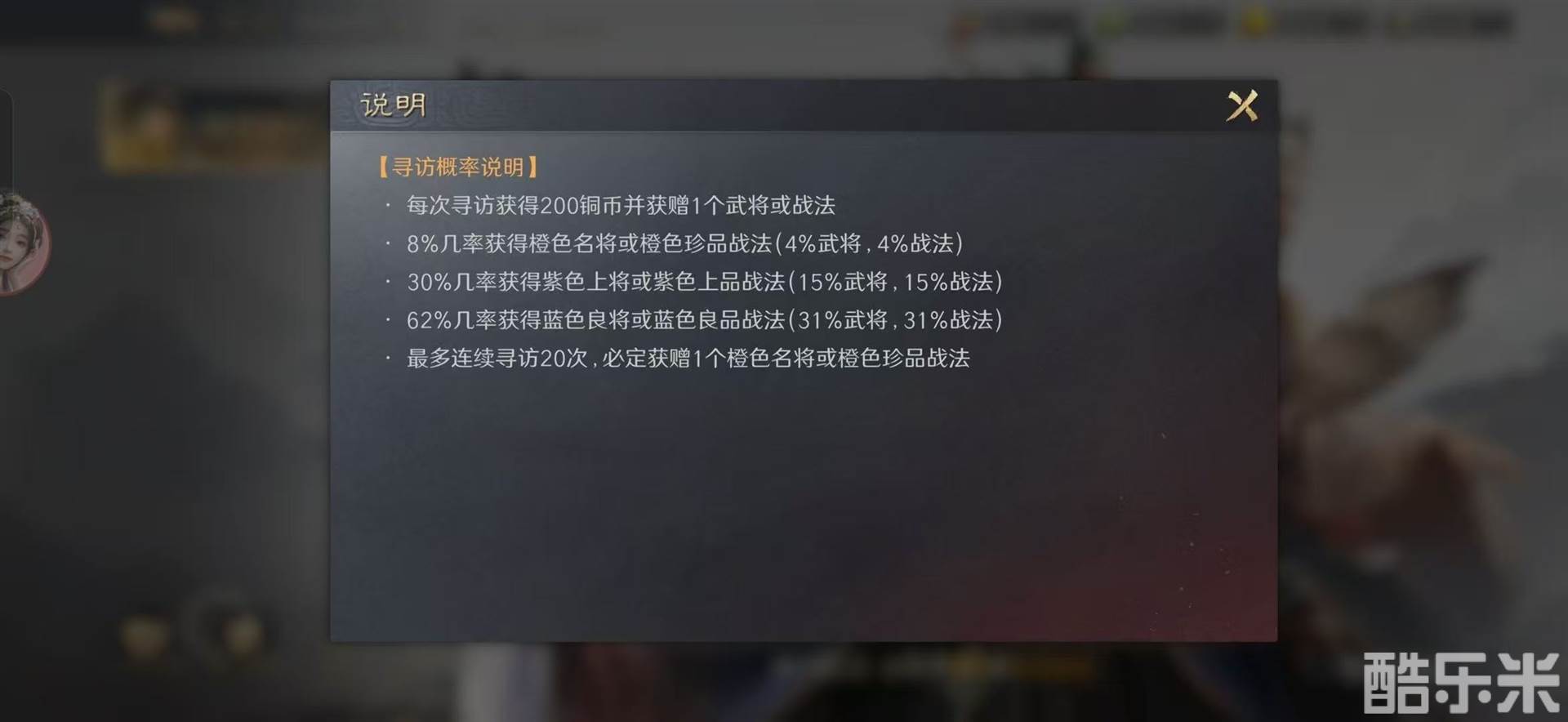 这游戏在抽卡概率上非常良心。它公开了8%的高橙将概率,而且20抽保底。这在同类游戏中是很难得的。很多玩家都反馈,在《三国:谋定天下》里,不用像在其他游戏里那样,抽个几十上百次都不见橙将的影子。在这里,很快就能抽到自己想要的橙将,大大提升了游戏的体验感。