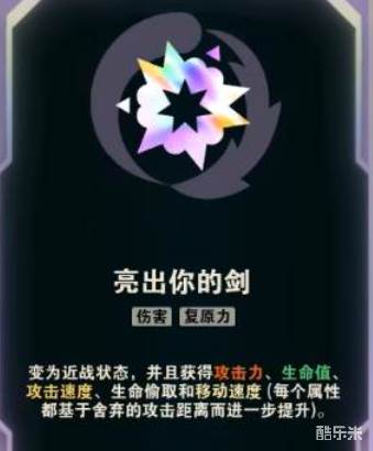 亮出你的剑:变为近战状态,并获得攻击力、生命值、攻击速度、生命偷取和移动速度。