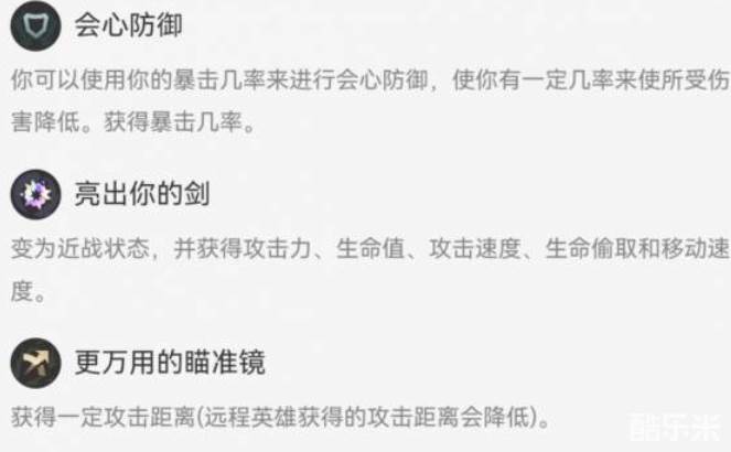 更万用的瞄准镜:获得一定攻击距离(远程英雄获得的攻击距离会降低)。