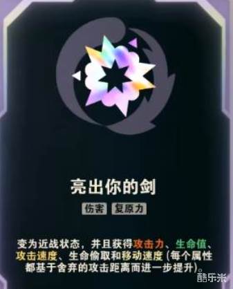 亮出你的剑:变为近战状态,并获得攻击力、生命值、攻击速度、生命偷取和移动速度。