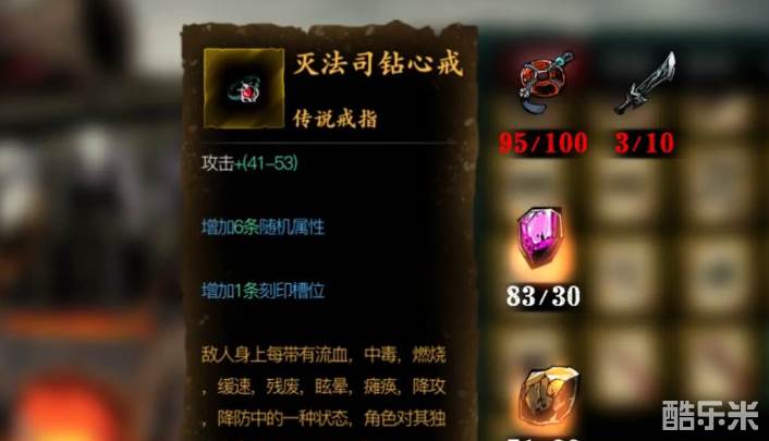 影之刃3灭法司钻心戒核心特效为:敌人身上每带有流血、中毒、燃烧、缓速、眩晕、降攻、降防中的一种负面状态,角色对其独立伤害提升10%,该效果可叠加。这意味着在搭配多debuff技能链时,钻心戒能大幅提升输出效率,尤其适合依赖异常状态打伤害的流派。下面和酷乐米小编一起来看看吧