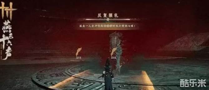 3、场地出2只小怪,boss架势被卸空后会掉4把武器,用了就消失,拿武器的站在小怪连上会有斩杀交互,用完打两下小怪就死了
