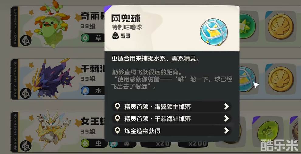网兜球洛克王国中一种特制的咕噜球,它的设计理念就是更适合用来捕捉水系和翼系的精灵。你要想拿到这个球,首先得了解它的来源。网兜球有两个主要的获得途径,一个是通过捕捉精灵并上报,另一个是通过炼金造物制作。下面和酷乐米小编一起来看看吧