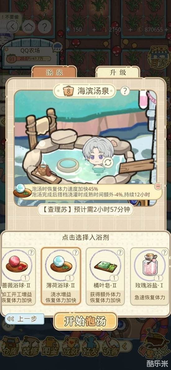 入浴剂分两种,一种是跟体力挂钩,一种是能额外缩短浇灌 加工时长