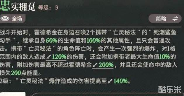 剑与远征霍德希金是种族为亡灵的战士,一技能名为舰炮轰击,会朝着所有敌方英雄发射出最少五枚火炮。会依次对其及周围一格范围内角色造成伤害,需要注意的是该炮弹也会对我方角色造成伤害,只是伤害会低一些。如果敌方角色不足以五个人,便会有人遭受到重复炮击且第二次伤害降低百分之二十。而他的炮击伤害会由敌方英雄的数量决定,要是对方上场存在着蝎子分身便会追加一枚炮弹。下面和酷乐米小编一起来看看吧