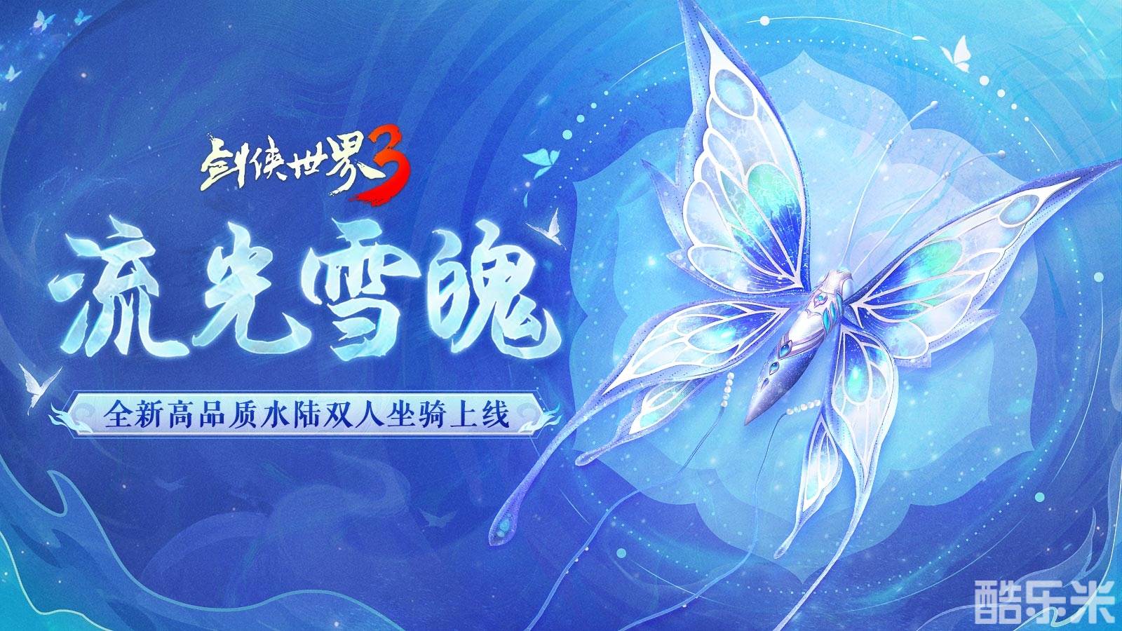 雪落无声,江湖换玉妆,《剑侠世界3》初冬坐骑上新,三款蓝色系坐骑踏雪而来!霜华凝尾,雪狐舒尾,「寂水寒烟」漾开冰蓝涟漪,所过之处霜雪自生,万物凝冰;月影映照「流光雪魄」之蝶翼,冰蝶振翅,洒落星屑纷纷;轻若晨雾,冷若霜雪,冰蓝锦鲤「溯月寒纱」破浪而出,荡碎玉鳞点点。一色寒光,照彻江山清白。愿与少侠相遇《剑侠世界3》江湖,驭冬日坐骑,策此清寒,笑踏雪歌行!