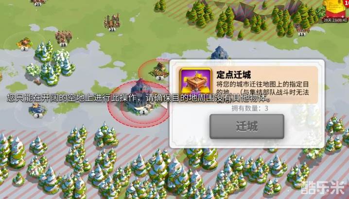 定点迁城存在明确限制条件,失败常见原因包括关卡未打通、目标位置被障碍物占据或处于联盟领土外。树木、野怪等地图元素会阻碍迁移,需提前清理目标区域。跨服迁移将重置原服务器所有进度,包括资源积累和建筑等级,属于不可逆操作。建议迁移前领取全部活动奖励,避免进度损失。