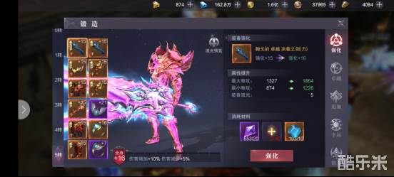 1. 强化系统是对穿戴的装备通过消耗晶石来进行属性提升的系统。强化系统完美的还原了炫酷流光效果,当装备强化到+7、+9、+11、+13、+15时会有炫酷流光变化。