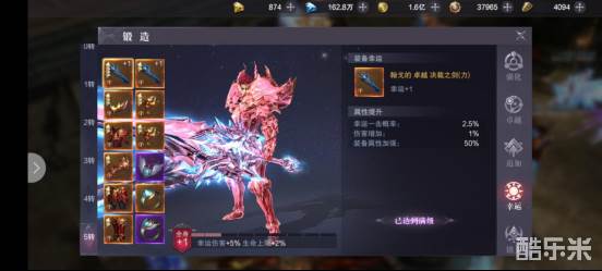 幸运系统主要通过消耗幸运晶石来提升幸运一击概率、伤害和装备属性加成。同时当全套装备幸运达到指定等级时还会有幸运伤害加成和生命上限加成,战力非常可观。