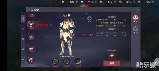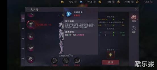 同阶激活2个、4个、6个大天使装备时,可激活不同的被动属性,注:每阶的被动数据不相同。