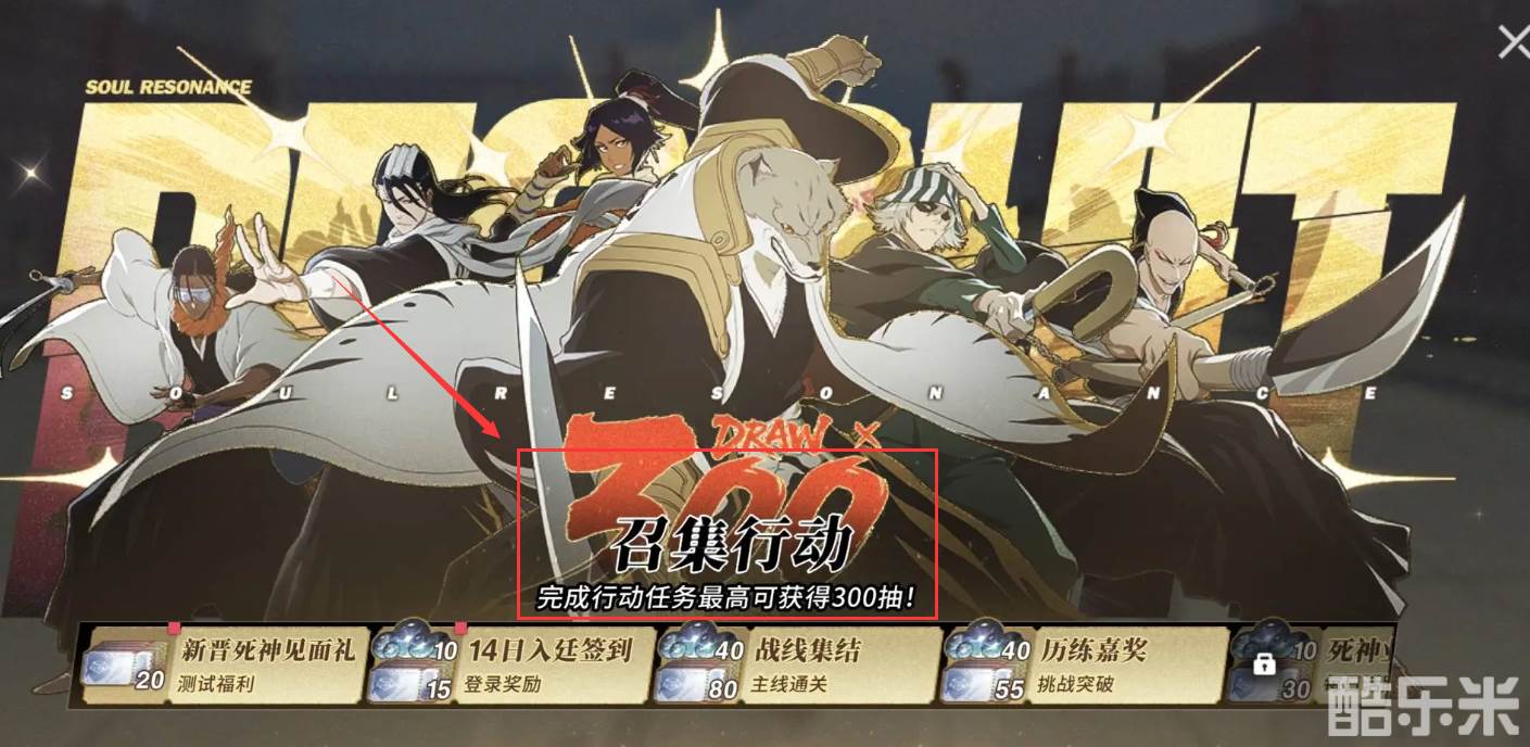 每一次抽取,都可以打八折,并且,在游戏的开服期间,还具备有“征召行动”这一个任务,在征召行动内,玩家可以领取到新晋死神见面礼,以及14日签到礼包,在完成了战线集结,以及历练嘉奖时,也能够获取抽卡机会。