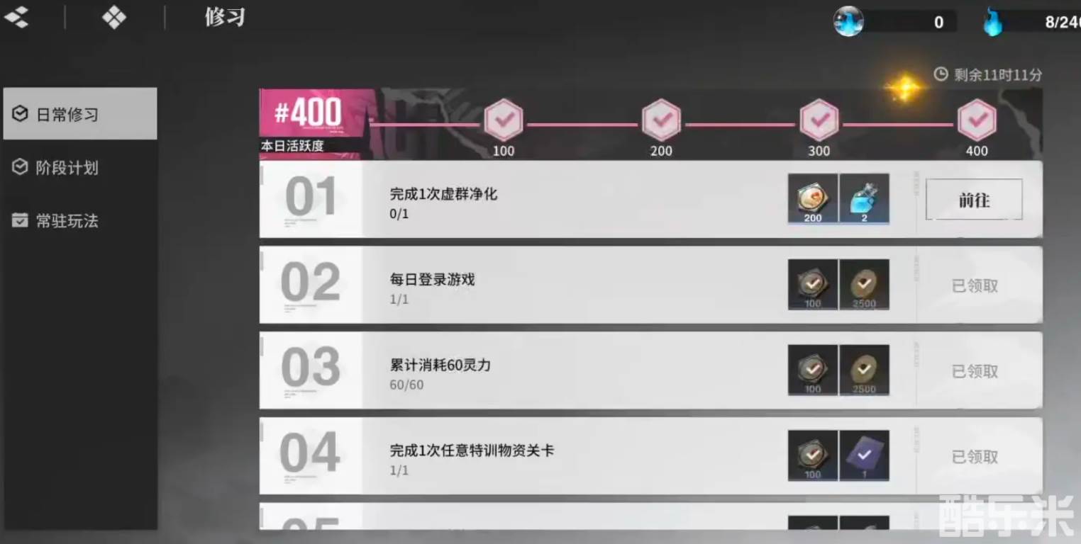 第三个途径是玩家完成每日的常规修习任务,以及每周的常规任务,通过挑战一次主线章节,亦或是升级角色,达成任务目标,即可直接领取到奖励。