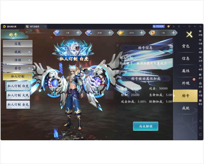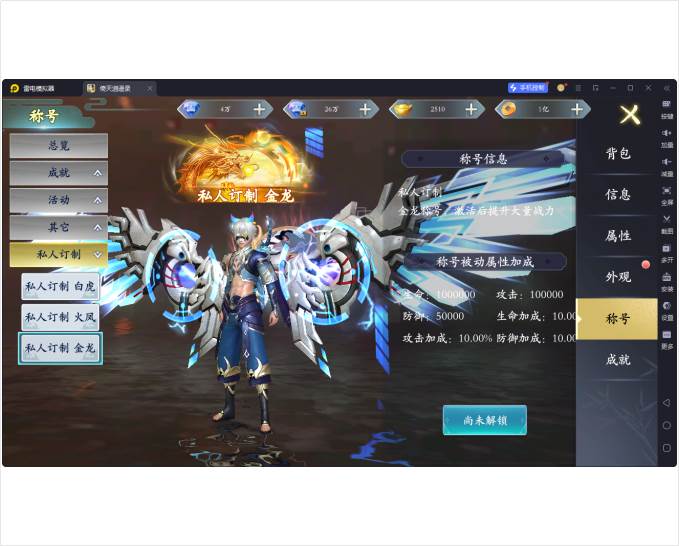 任选4养成系统拉满(坐骑、翅膀、至宝、侍女、侍武、背饰、法宝)